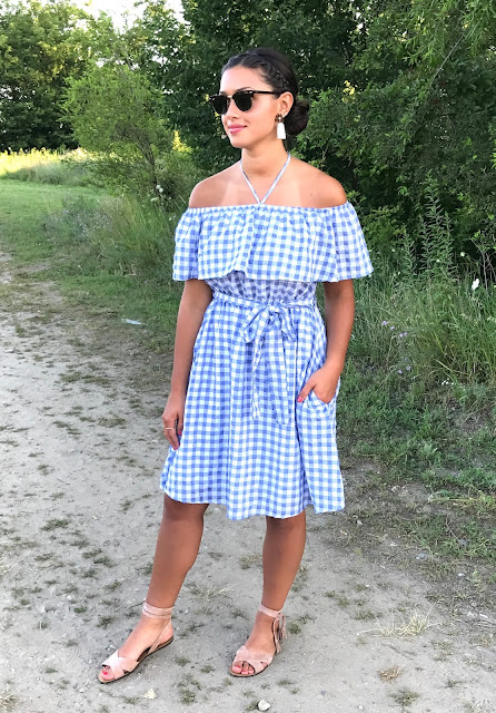 Anyway, I thought that this dress would be perfect for my local fair look. I picked up this gingham dress during my trip to the Somerset Mall at the Anthropologie store. Gingham is my go-to pattern because it's timeless and great for all seasons. My closet is at least one-third gingham. This dress is now sold out, but I linked a similar one at the end of this post.